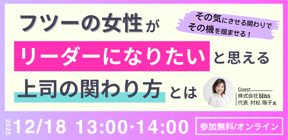 ・女性管理職を増やしたいが、候補者が見当たらず行き詰まりを感じている方・仕事はできるが管理職には踏み出せない女性に、どう背中を押すか悩んでいる方・女性部下の“自律性”や“信頼関係”の築き方に課題を感じている方
